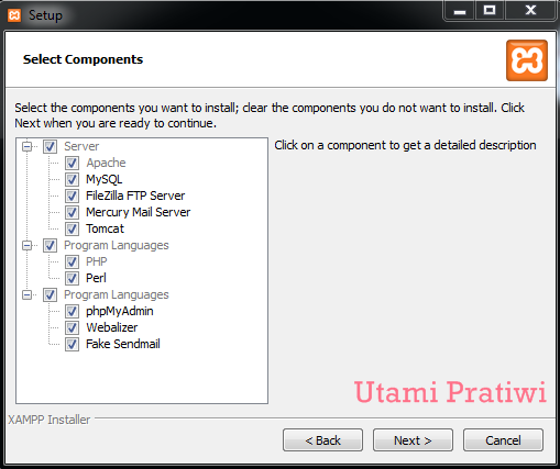 Components” yang berisi pilihan aplikasi-aplikasi yang akan diinstall, pada