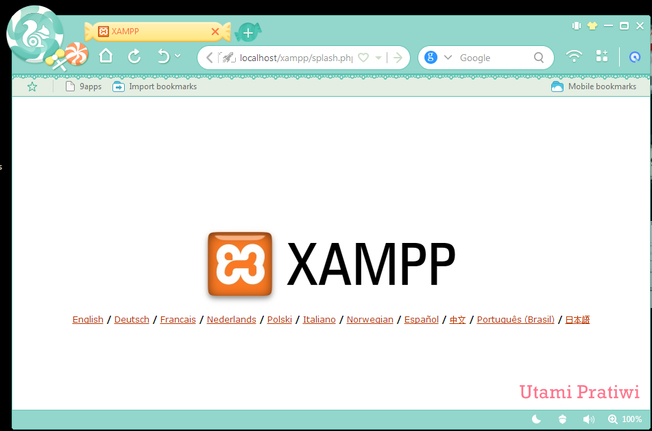 11. Jika telah terlihat halaman XAMPP, berarti instalasi XAMPP telah berhasil dan Web Server Apache telah berjalan.