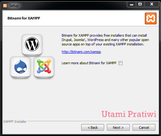 5. Berikutnya akan ditampilan windows “Bitnami for XAMPP”